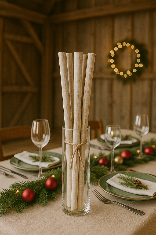 Bukiet z cienkich, lekko bielonych lasek cynamonu o długości 40 cm to wyjątkowa, naturalna dekoracja, która łączy w sobie minimalizm, elegancję i leśny aromat. Bielone drewno cynamonowe nadaje kompozycjom jasności i subtelności, jednocześnie zachowując ciepły, rustykalny charakter. Zestaw tworzy efektowny, wysoki bukiet idealny do wazonów szklanych, ceramicznych lub wiklinowych. Sprawdza się jako ozdoba stołu, komody, recepcji hotelowej czy świątecznej aranżacji w stylu skandynawskim, boho, farmhouse i natural glam.