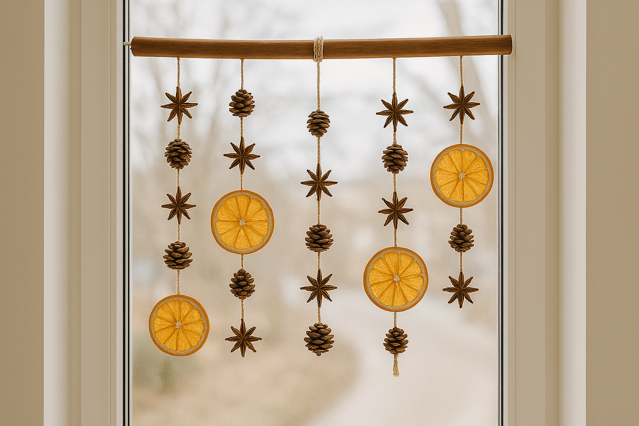 Zestaw DIY – Naturalna Girlanda z Cynamonu 40 cm, Pomarańczy, Anyżu i Szyszek | Makrama i Dekoracje Ścienne / Okienne