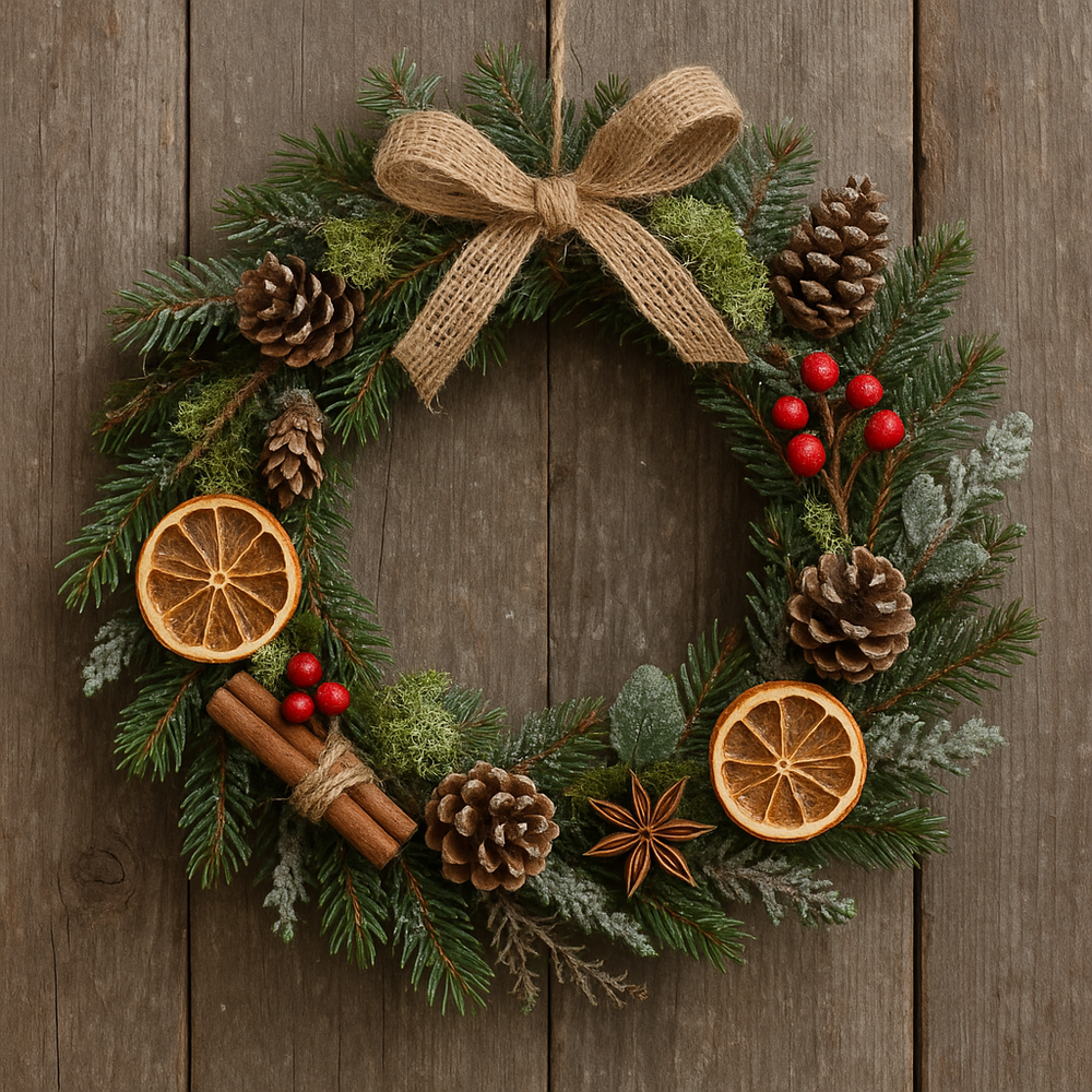 Zestaw do samodzielnego wykonania klasycznego, naturalnego wianka świątecznego z prawdziwego igliwia. Starannie dobrane elementy pozwalają stworzyć trwałą i estetyczną dekorację inspirowaną lasem i tradycyjnym rękodziełem. Idealny dla osób ceniących naturalność, prostotę i pracę własnych rąk.