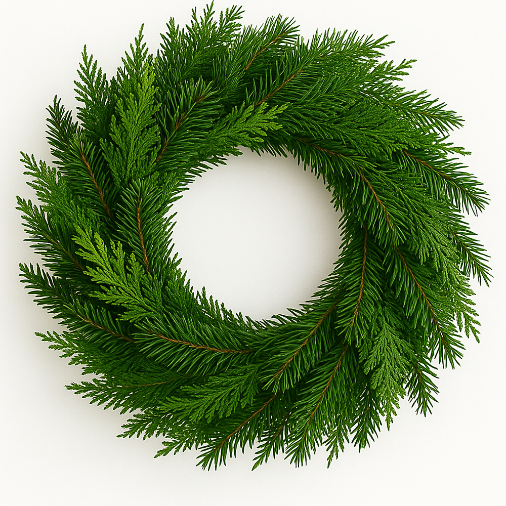 Naturalny wianek świąteczny z prawdziwego igliwia – zestaw DIY 25 cm | Tuja, cis, sosna, świerk