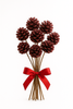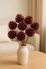 Elegancki bukiet dziewięciu dekoracyjnych szyszek w głębokim odcieniu bordo, lekko oprószonych brokatem, to idealny dodatek do świątecznych i zimowych aranżacji. Każda szyszka ma ok. 8 cm średnicy, dzięki czemu prezentuje się okazale i efektownie nawet w większych kompozycjach. Długi pik o długości ok. 40 cm zapewnia wygodne mocowanie w bukietach, stroikach i aranżacjach florystycznych.