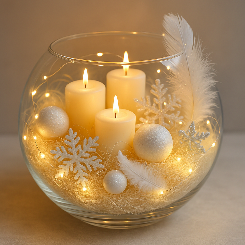 jako wypełnienie świątecznych szklanych mis, latarenek i kloszy