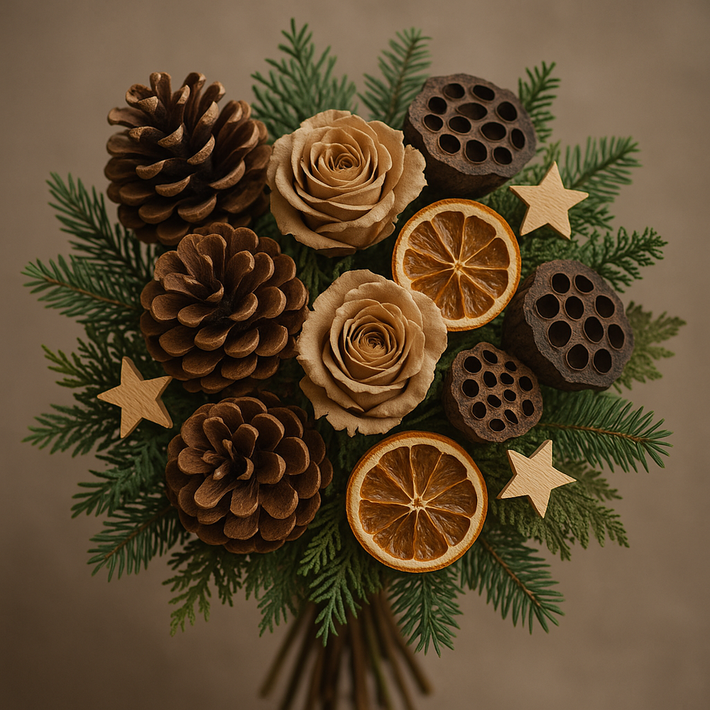 Idealny do łączenia z innymi suszonymi roślinami, szyszkami, gałązkami i świecami.