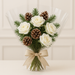 Jedną lub dwie róże możesz umieścić w centrum kompozycji z gałązkami świerku, bielonymi szyszkami i świecą. Róża pięknie rozświetli aranżację i doda jej elegancji.