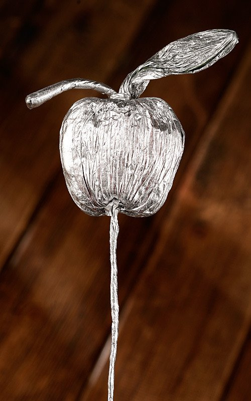Eleganckie srebrne jabłka na piku to wyjątkowy dodatek dekoracyjny, idealny do świątecznych kompozycji, stroików, wieńców oraz aranżacji w stylu glamour i winter chic. Każde jabłko ma około 6 cm średnicy, a cały pik mierzy aż 35 cm, co pozwala na wygodne osadzanie go w gąbce florystycznej lub w większych dekoracjach.