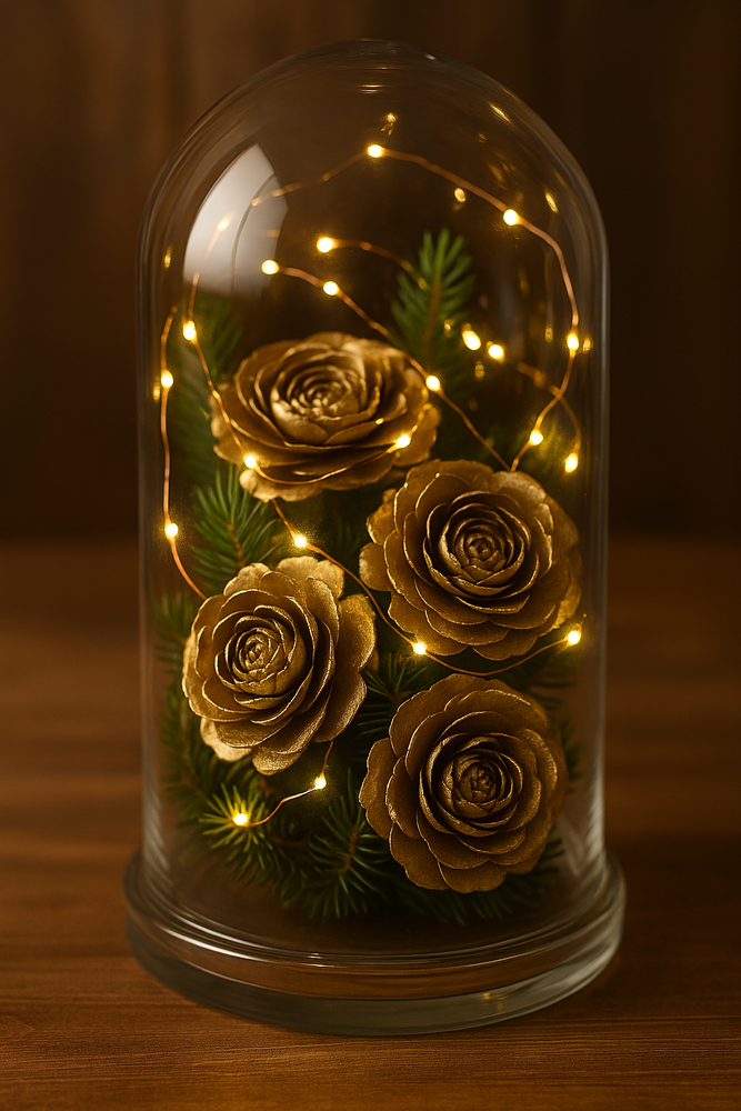 Każda róża powstaje z naturalnej szyszki cedru, której układ łusek tworzy idealny, kwiatowy kształt – unikatowy, pełen struktury i głębi.