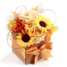 Gąbka florystyczna do suchych i sztucznych roślin może być przycięta na dowolny kształt. Możemy ja więc umieścić w dowolnym naczyniu.Jako, że jest materiałem technicznym warto zadbać o jej zakrycie. W przykładzie obok ( pudełko kwiatów z serii GrandDeco) sztucznymi kwiatami i suszonymi roślinami.