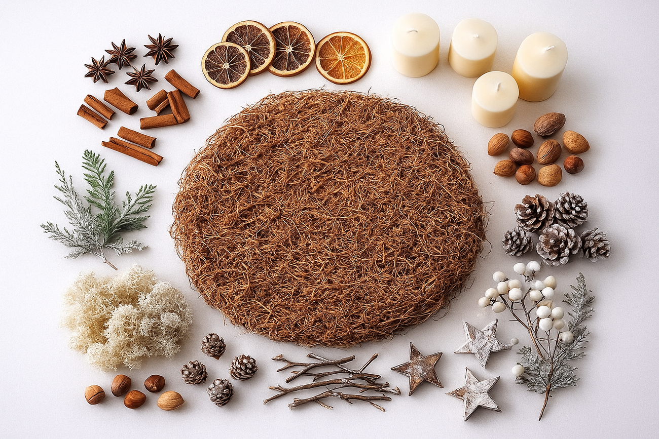 Zestaw DIY – Mata z Korzonków z Naturalnymi Dodatkami Retro & Platyna (rustykalny komplet świąteczny)